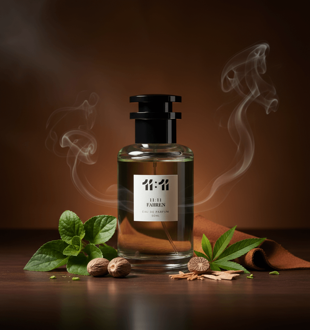 11 11 Farhen هو عطر قوي ودافئ يجسّد الرجولة بأرقى صورها. يبدأ بنفحات جلدية ناعمة ممزوجة بأوراق البنفسج مع لمسة حمضية خفيفة. يتطور القلب ليكشف عن نوتات دافئة من جوزة الطيب وخشب الأرز والباتشولي، مانحًا العطر عمقًا وأناقة. وفي القاعدة، تتداخل نغمات الفيتيفر المدخّنة والعنبر لتُترك أثراً ناعمًا، قويًا، وفاخرًا.