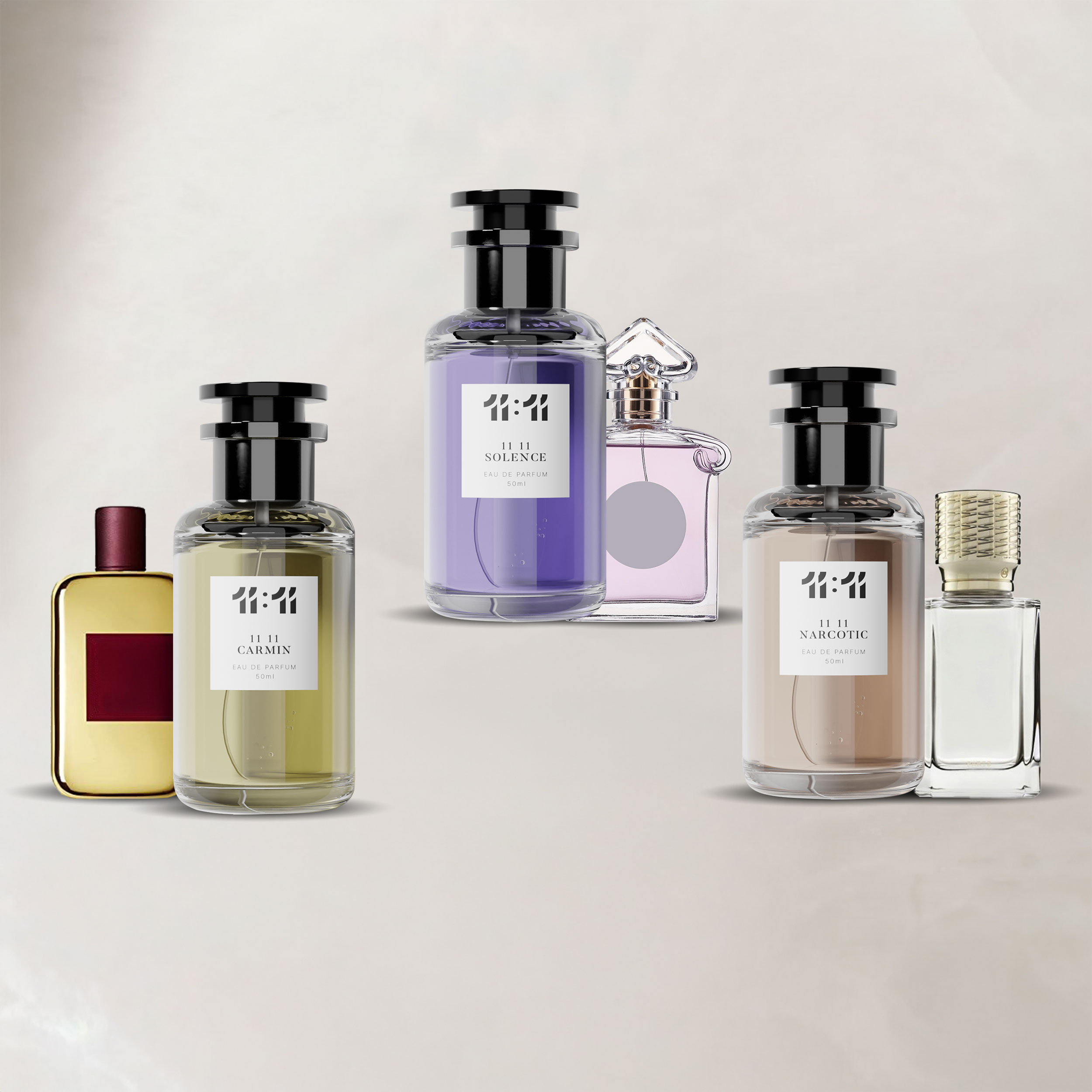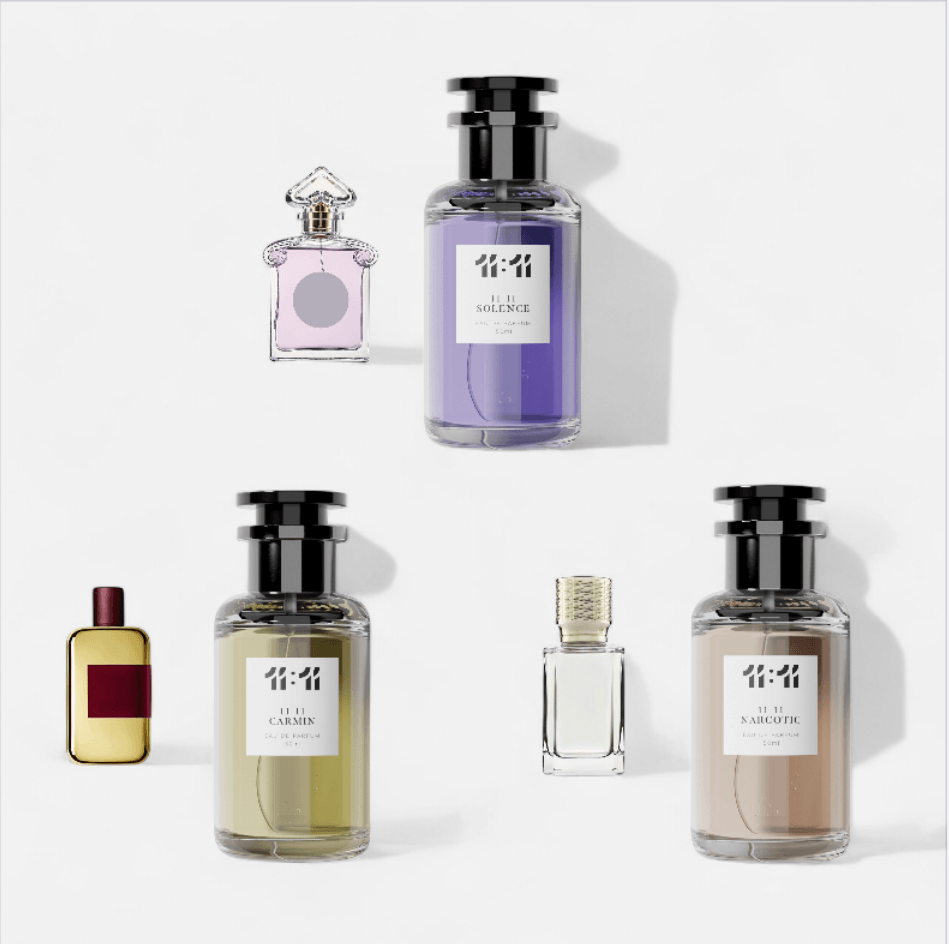 اكتشف باقة عطور 11:11 – كارمين، سولانس، وناركوتيك.
