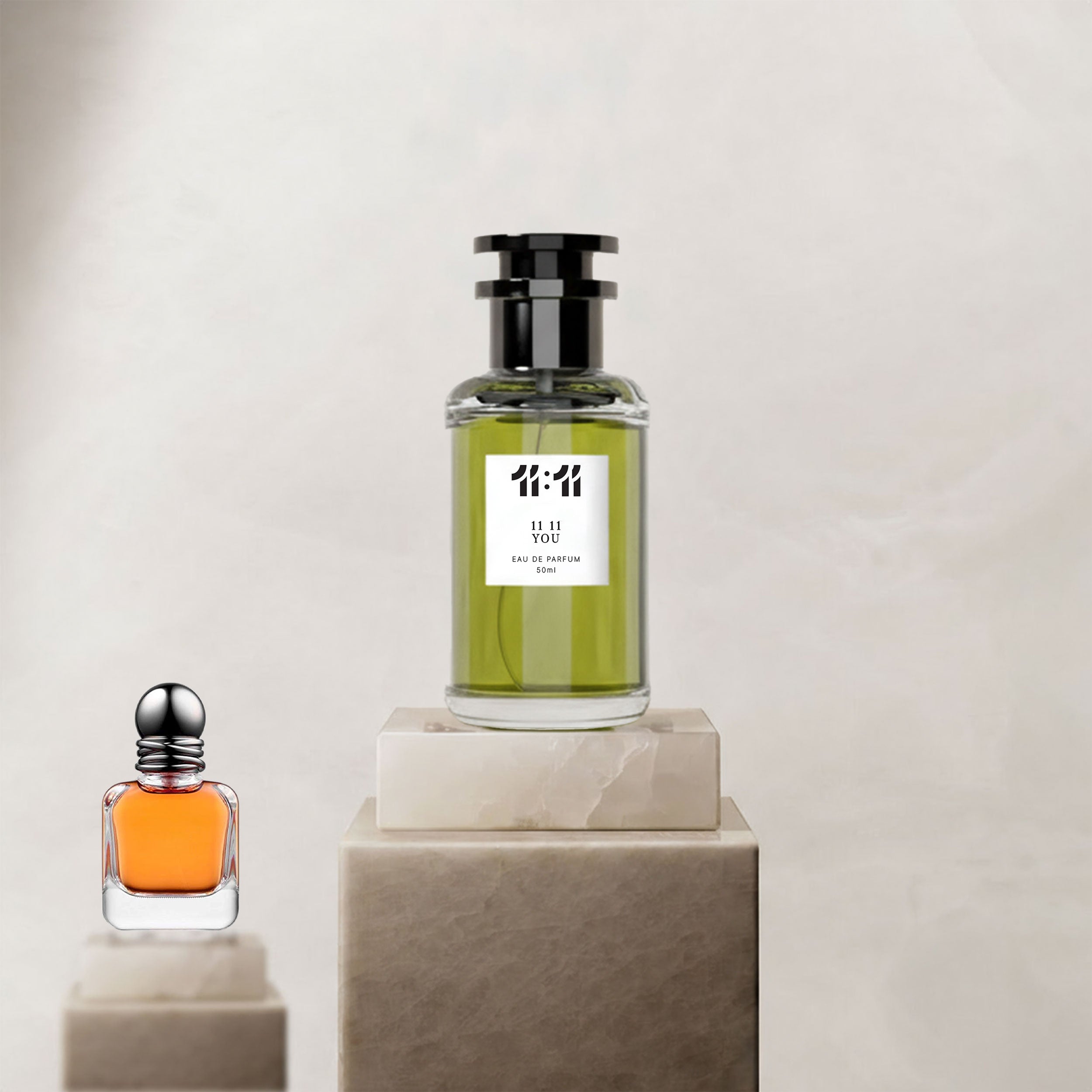 11 11 You is a bold and captivating fragrance that blends the warmth of chestnut, the spice of cardamom, and the sensual depth of smoky vanilla. This powerful scent embodies confidence and passion, perfect for those who embrace strength and modern elegance.