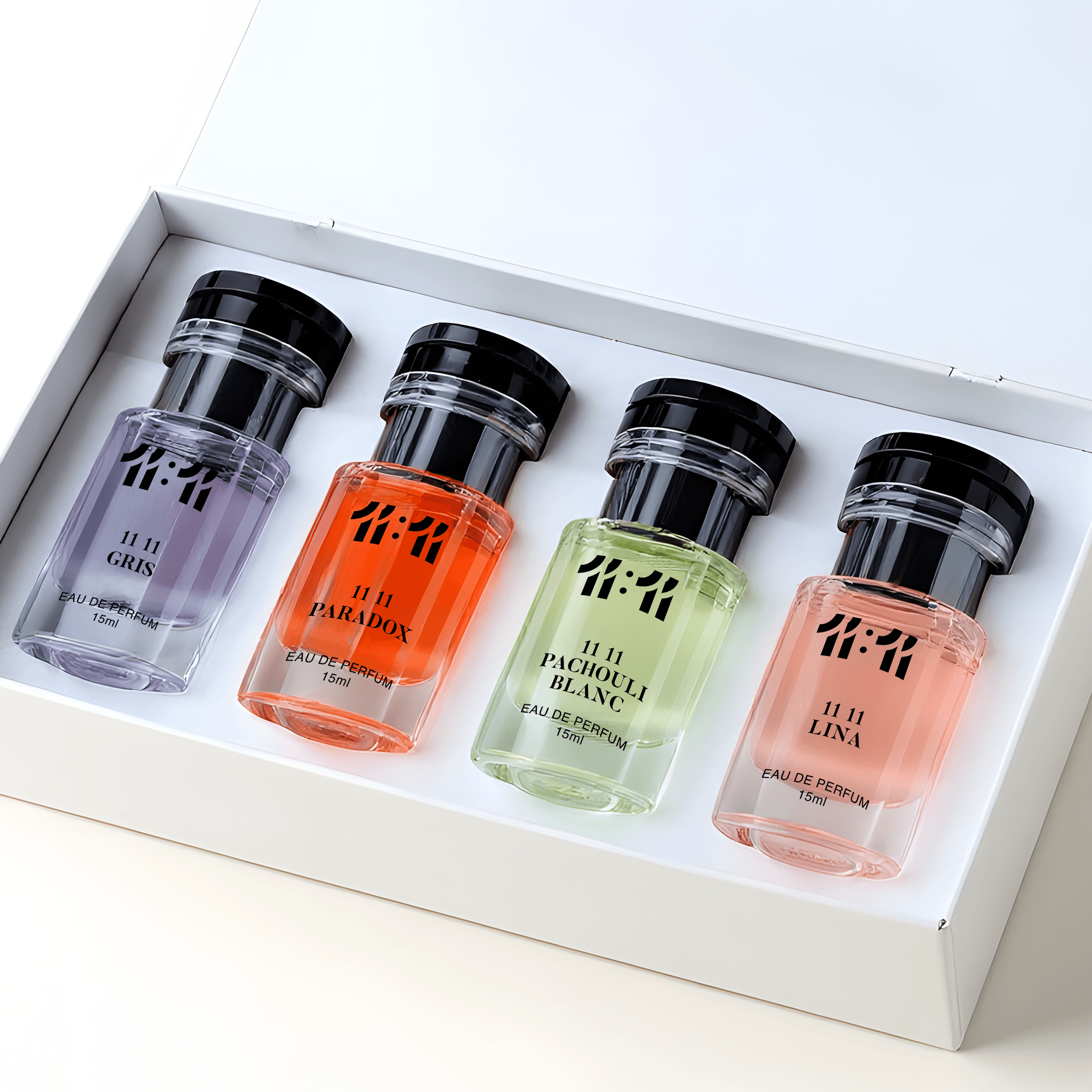 Discover brilliance with the 11 11 Diamond Set – a curated collection of four refined fragrances that embody elegance and sophistication. This luxurious box includes travel-friendly 15ml bottles of: