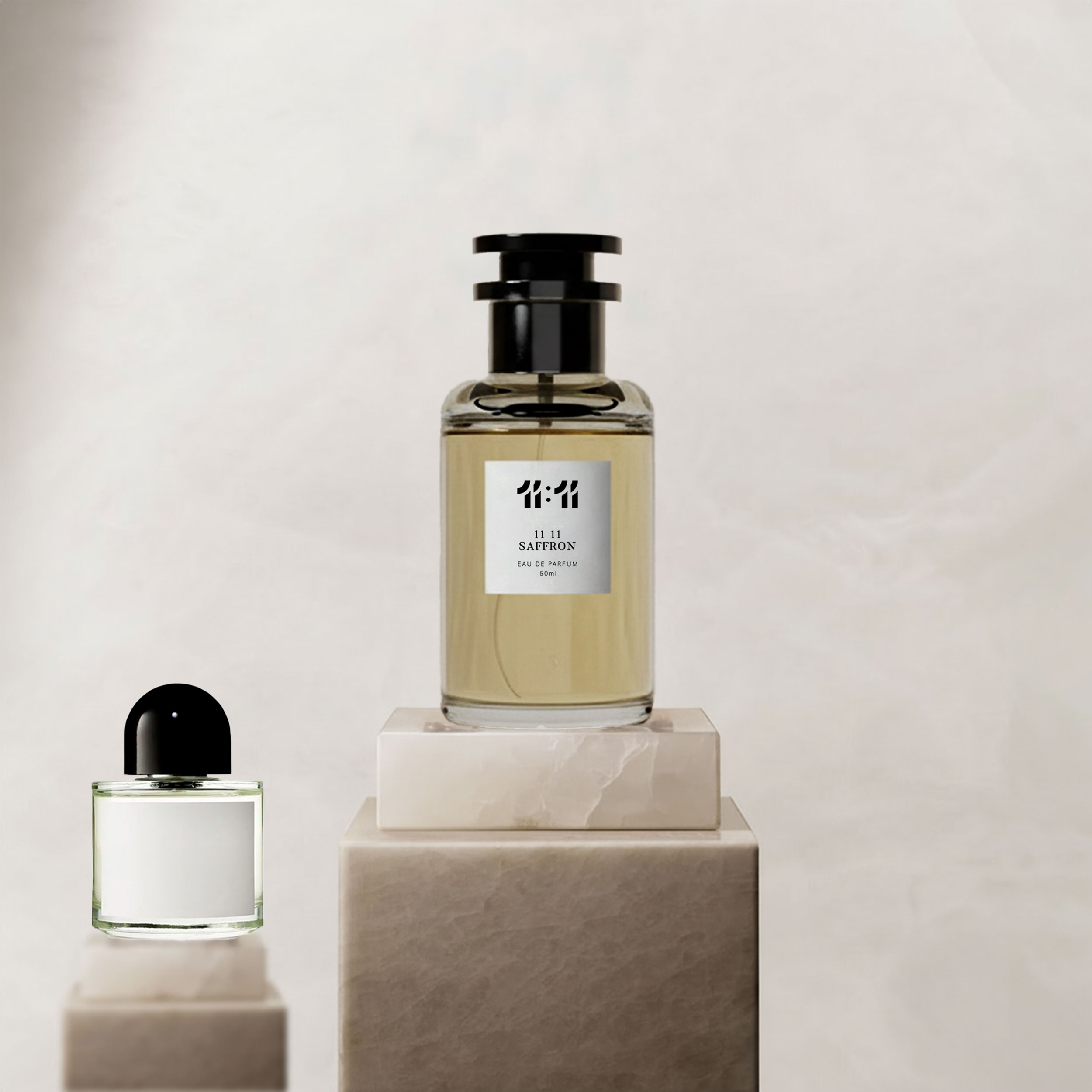 A seductive blend of exotic saffron, dark florals, and supple leather, with a luscious hint of fruit. Bright pomelo and juniper add a lively touch to an elegant heart of black violet and leather, while a whisper of raspberry and warm woods leaves an understated sweetness.