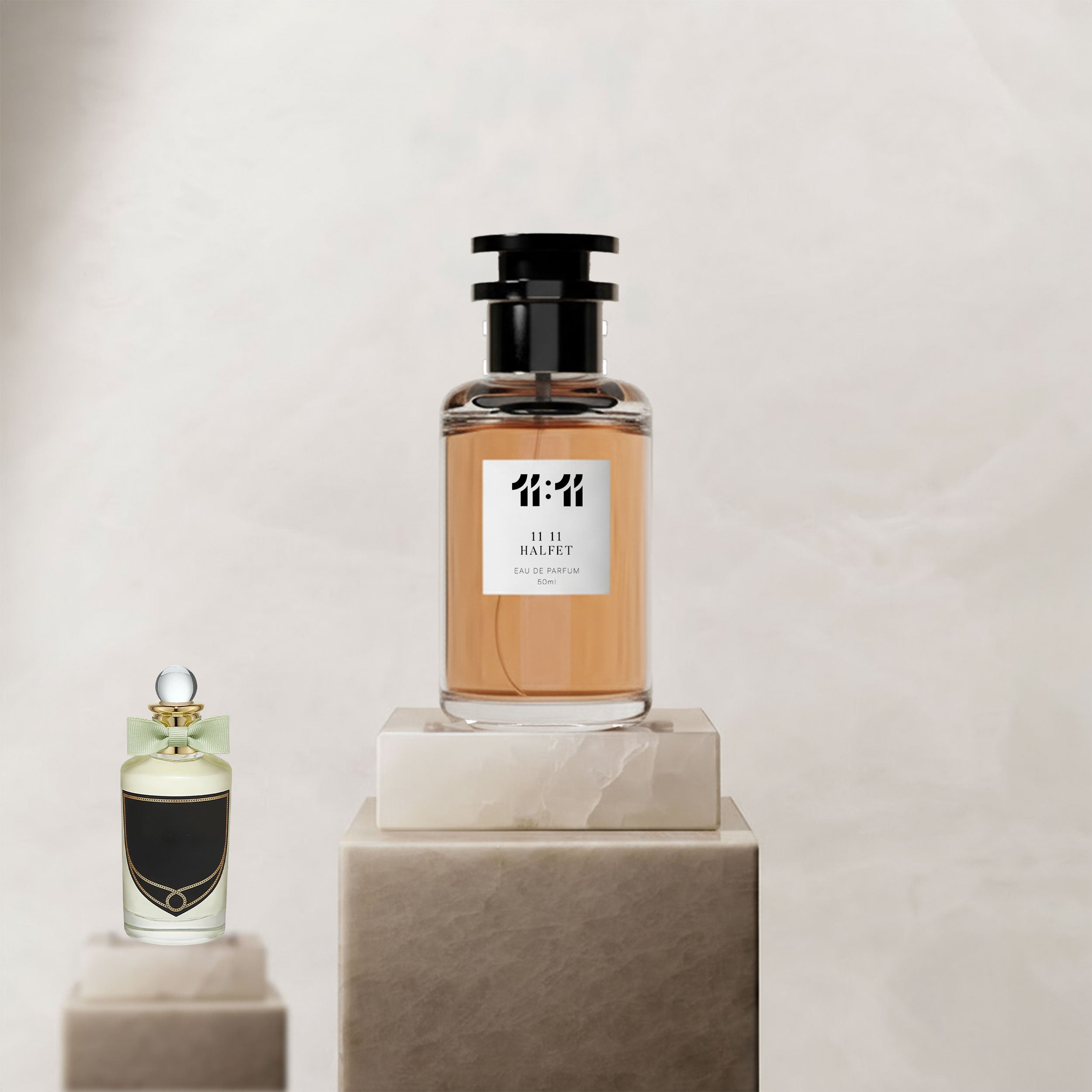 Mysterious, rich, and captivating. 11 11 Halfet is a bold oriental blend that opens with spicy notes of cardamom, saffron, and citrus, leading into a heart of rose, nutmeg, and oud. The base is deep and warm with leather, amber, and sandalwood, leaving behind a seductive and unforgettable trail. A luxurious scent that speaks of power, elegance, and intrigue.